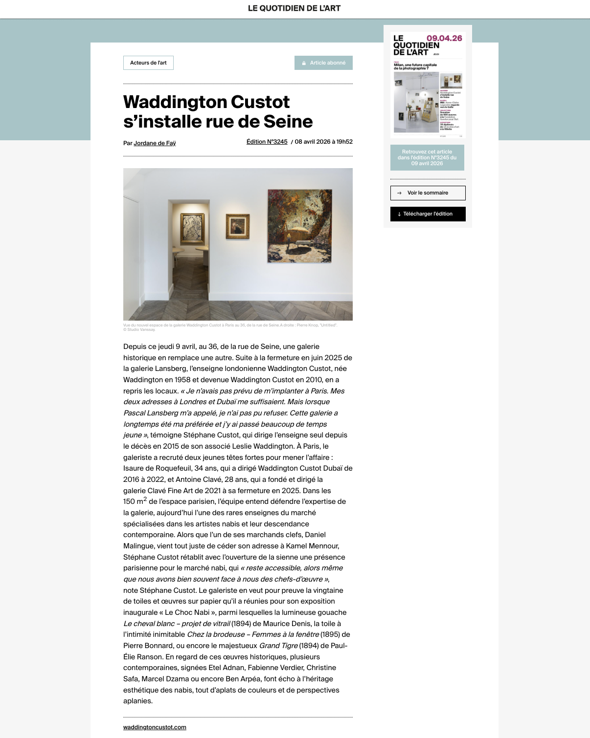 📣 Armance accompagne Waddington Custot pour la communication et les relations médias de l’exposition